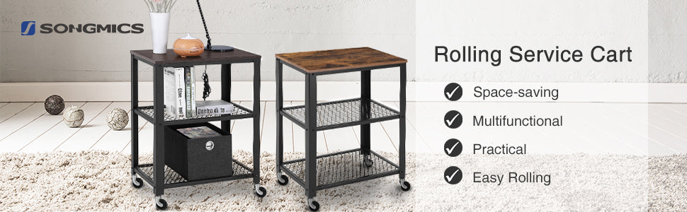 Mobilité et style réunis : ce chariot VASAGLE à 3 étagères offre un espace de rangement pratique sur roulettes verrouillables. Idéal comme desserte de cuisine, bar mobile ou rangement d’appoint dans un bureau ou salon. Structure métal noir + plateaux bois pour un look industriel élégant.