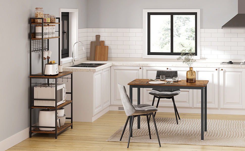 Sobre et élégante : cette table à manger VASAGLE offre un plateau en bois effet vieilli et une structure métal noire pour un style industriel affirmé. Compacte (110×70 cm), elle est idéale pour 2 à 4 personnes dans une cuisine, salle à manger ou studio.